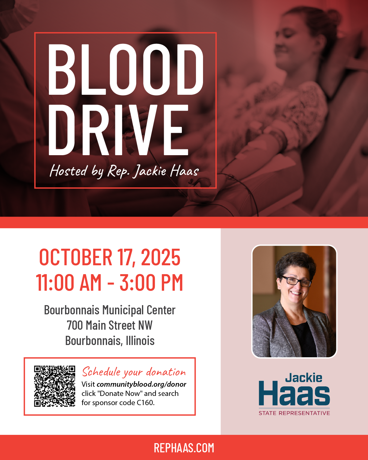 KANKAKEE – State Representative Jackie Haas (R-Kankakee) is hosting an upcoming blood drive event on Friday, October 17th, from 11:00 AM to 3:00 PM. The event will be hosted at…