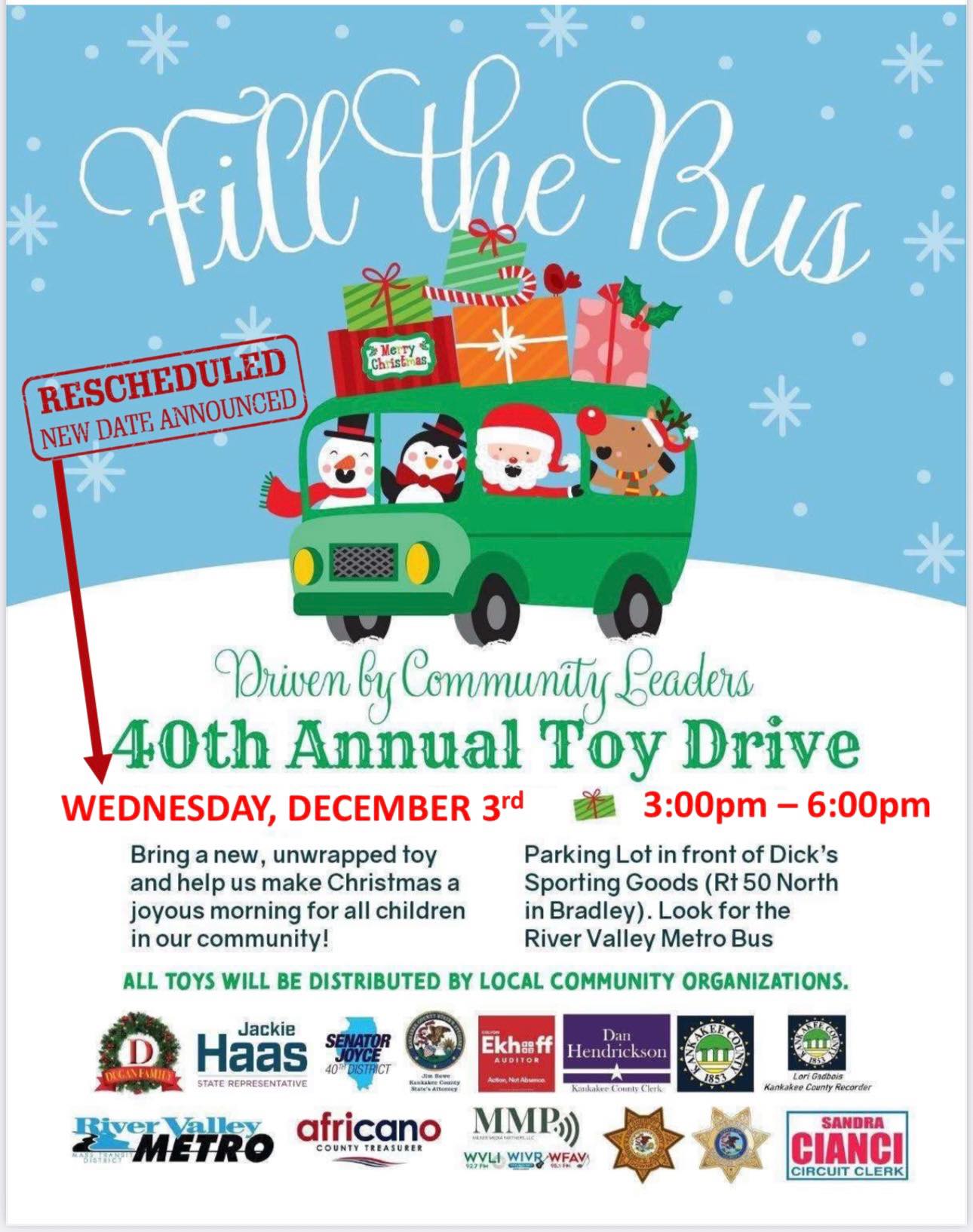 Due to the expected snow and hazardous travel conditions over the weekend, the Fill the Bus Toy Drive was rescheduled to Wednesday, December 3rd from 3–6 PM. We want everyone…